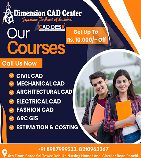 Dimension CAD Center is a premier CAD training institute in Ranchi, dedicated to providing top-quality education in computer-aided design (CAD) and related technologies. With expert faculty, industry-relevant courses, and hands-on training, we empower students and professionals with the skills needed to excel in the fields of architecture, mechanical design, civil engineering, and more.